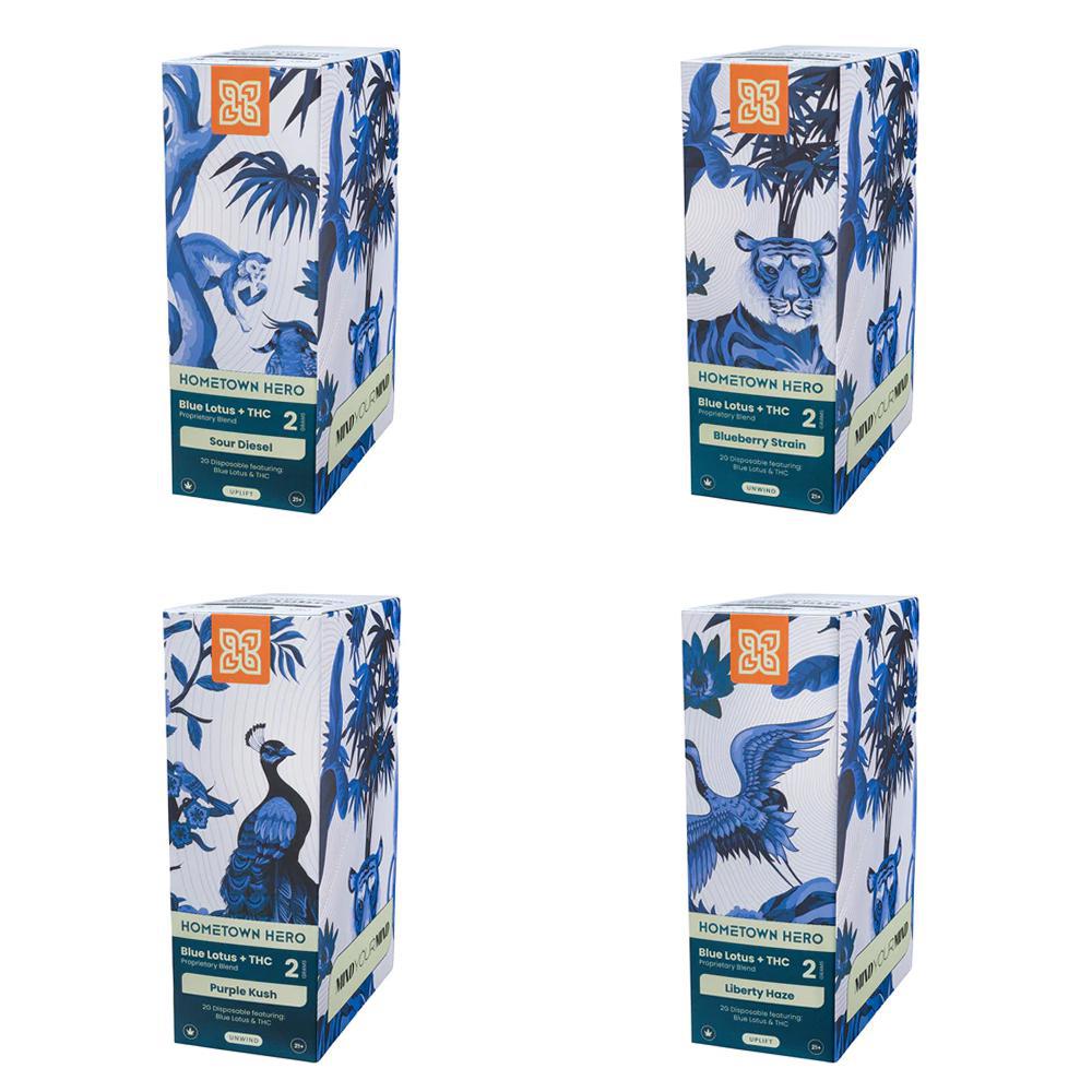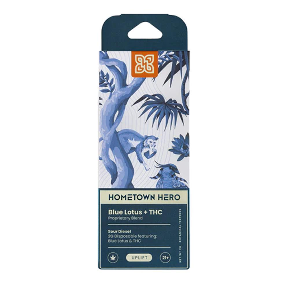Discover the exceptional world of Hometown Hero Blue Lotus Vapes, available in 2-gram disposable vapes that offer an exclusive blend of botanical and cannabinoid richness. Each vape is powered by a proprietary blend featuring Delta-8, HHC, Blue Lotus Extract, and botanical terpenes, promising about 1,200 puffs of sublime experience. Additionally, the convenience of USB-C rechargeability and a commitment to zero carrier liquids make these vapes a top choice for discerning users.