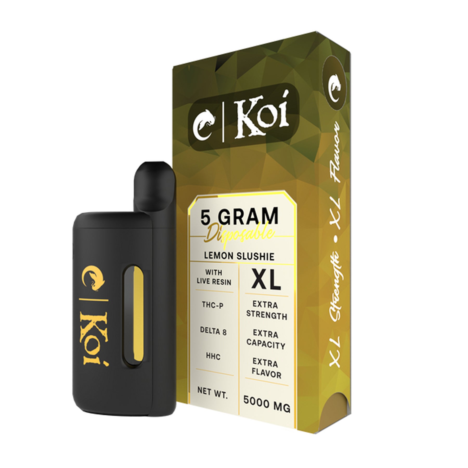 The Koi 5 Gram THC-P Live Resin Disposable Vape is the ultimate choice for those seeking an ultra-relaxed feeling. Crafted with botanical terpenes and high potency THC-P + Hexahydrocannabinol + Delta 8 Live Resin, this vape delivers a magnified flavorful and aromatic experience that is sure to satisfy your cravings.